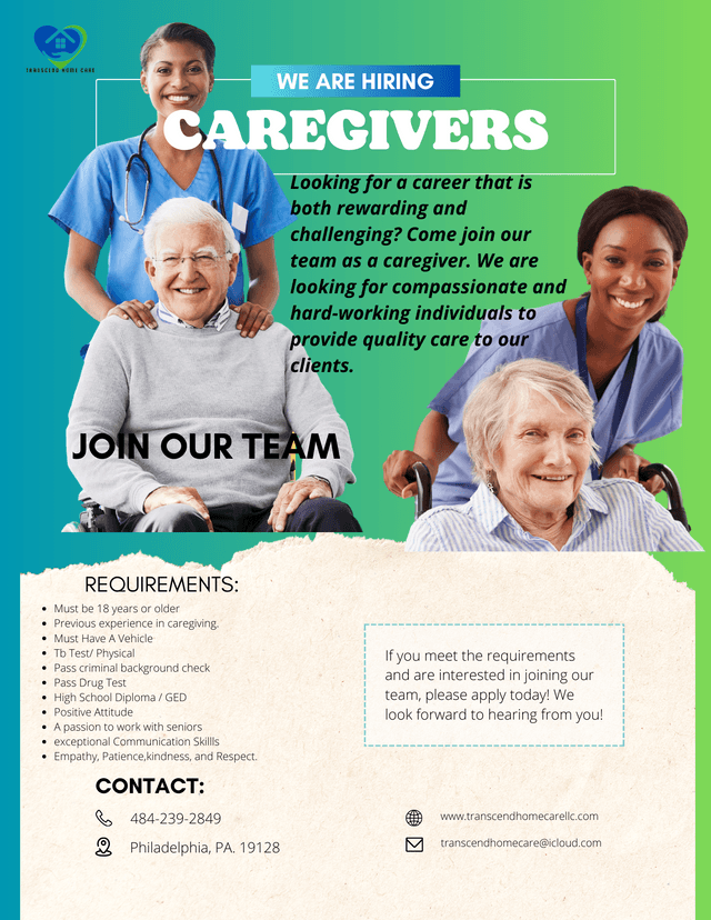 We're always looking for compassionate individuals who are dedicated to providing exceptional care for our residents. Explore career opportunities at Transcend Home Care LLC.